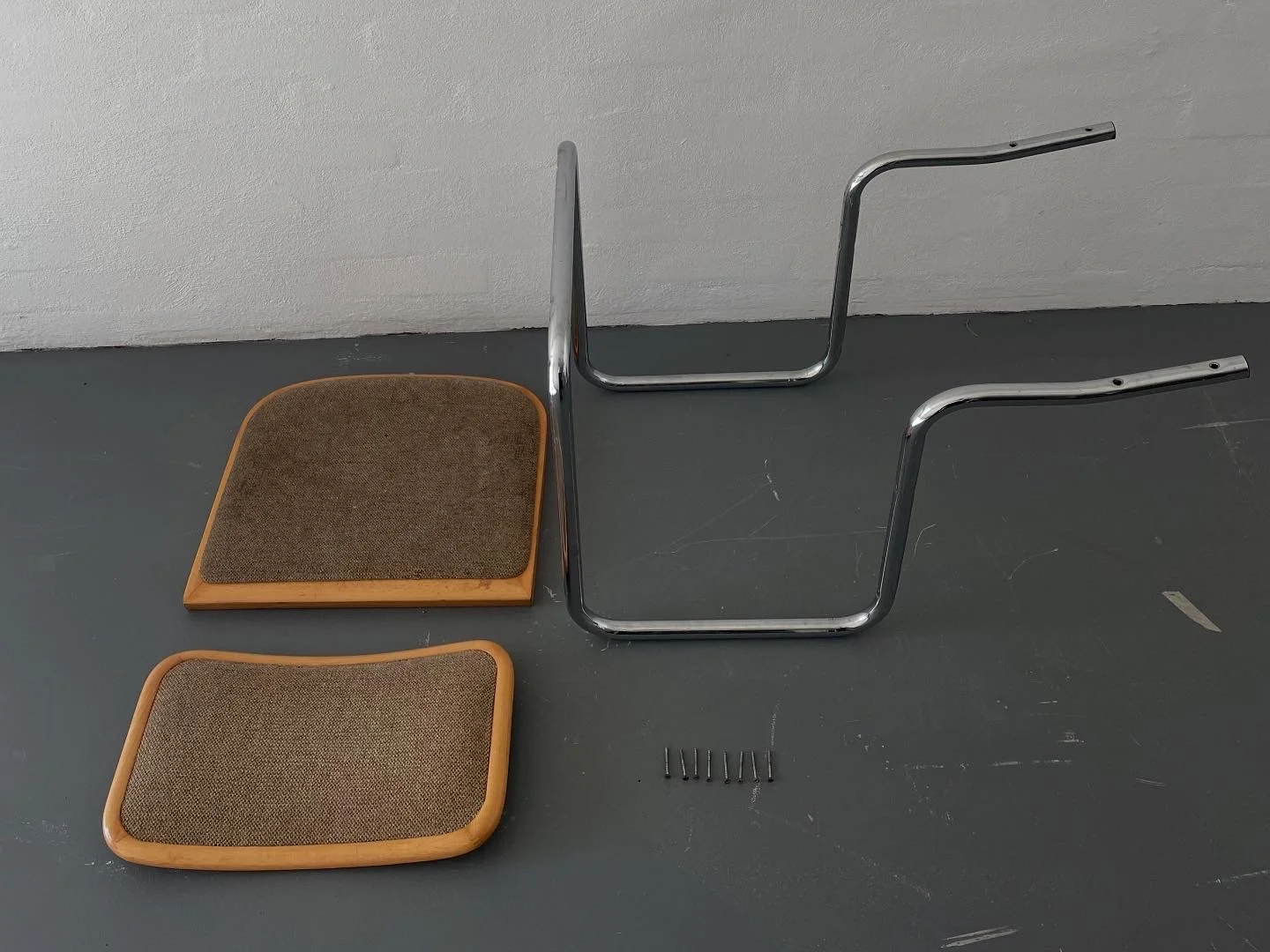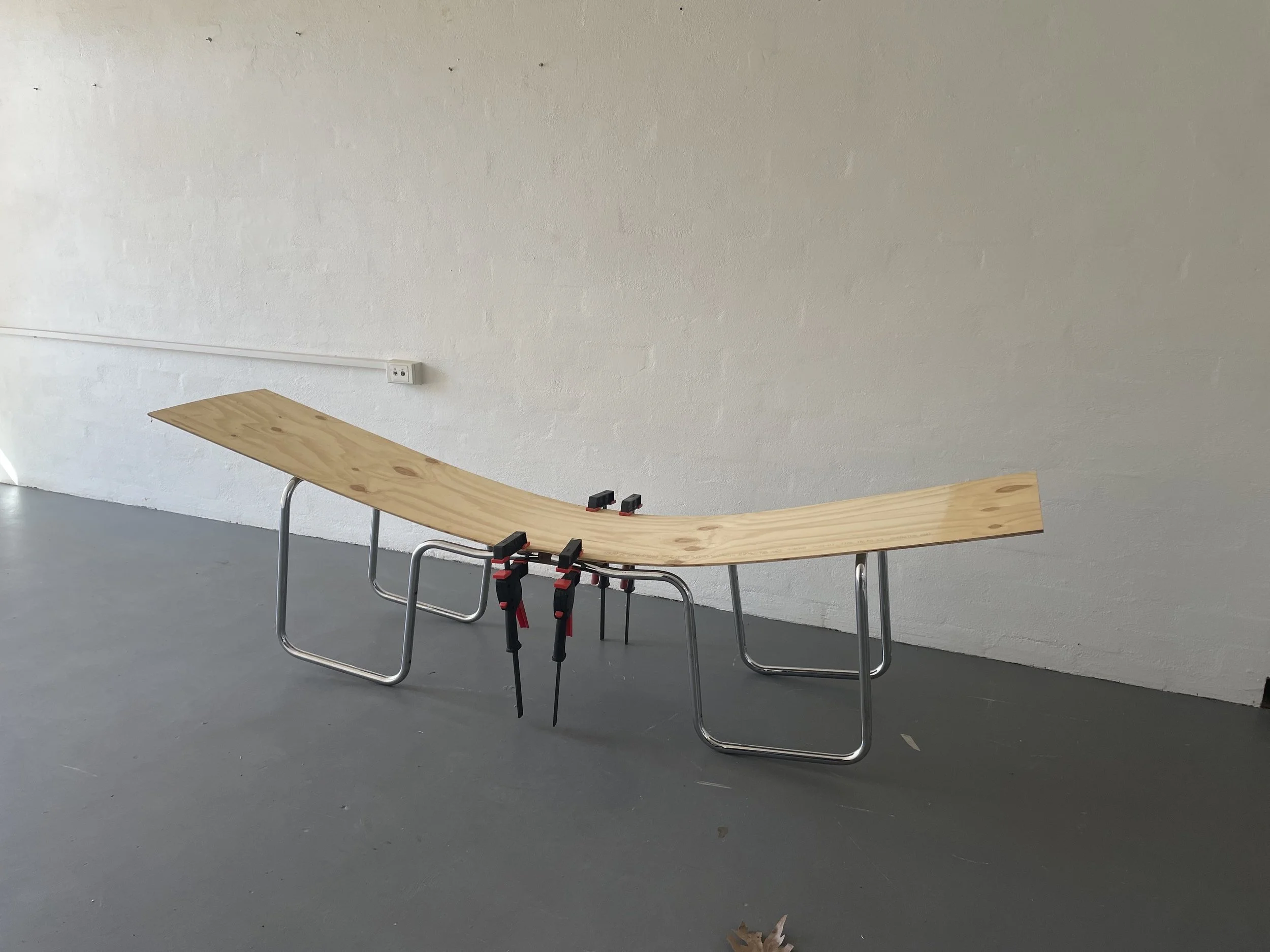 Cesca Bench began as 2 Cesca Chairs. Discarded and in need of restoration, the frames were combined to create a larger, single frame. Icons of Modernist Design, I wanted the rest of the design to maintain a sensitivity to the original objects. The radius of the curved ends of the bench, mirror that of the original chairs’ seats and the tensioned nature of the ply nods to the freeform, tensioned nature of the chair frames.