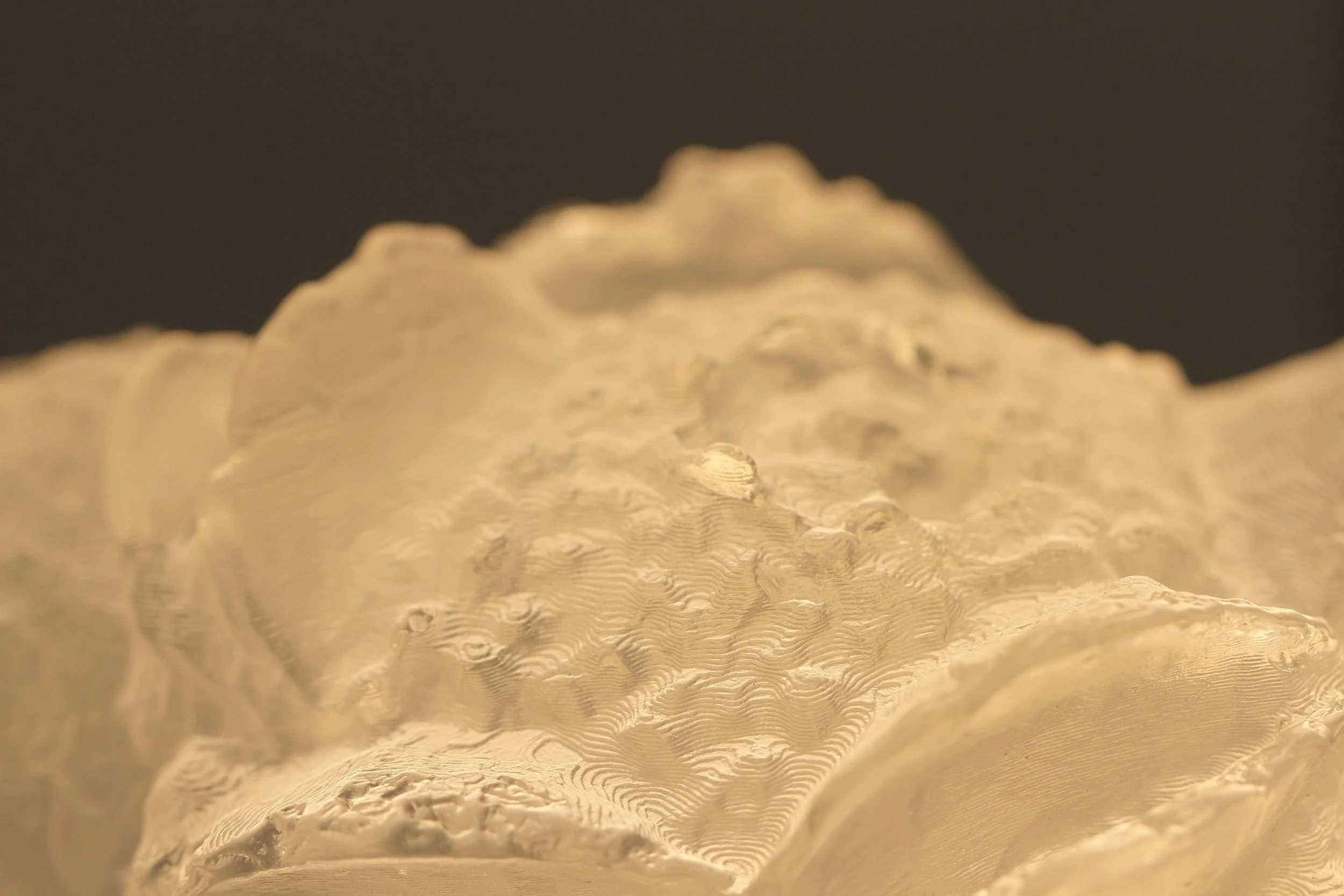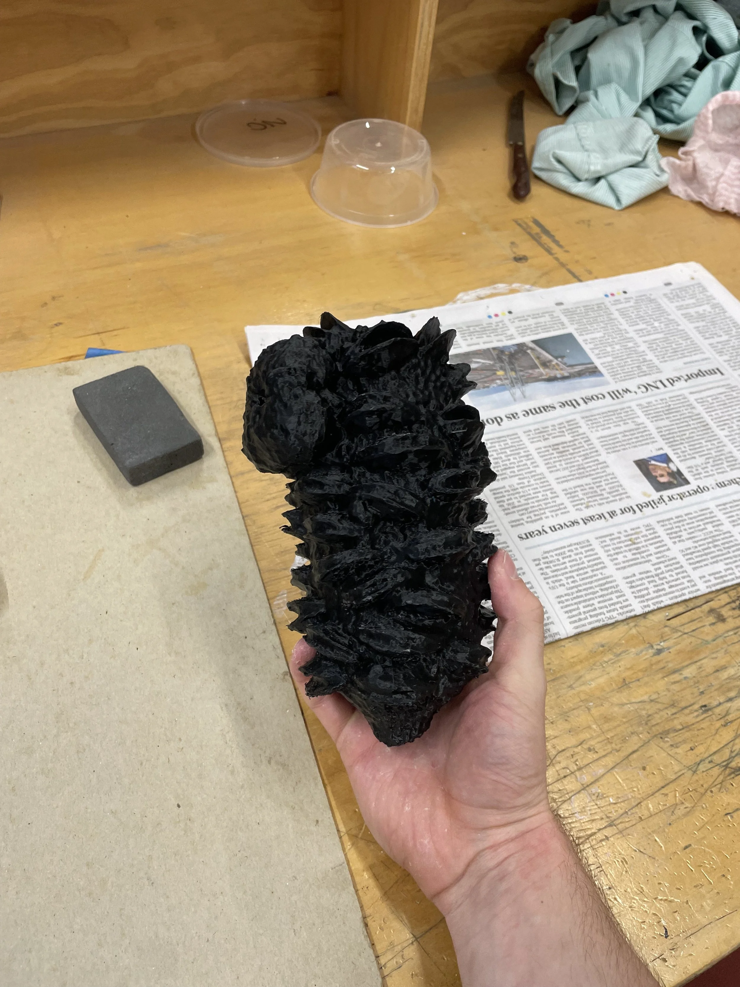 Banksias, much like glass, rely on a significant amount of heat to facilitate a change in form and purpose. This process of transformation was engaged with in the casting of the Banksia Seedpod. The cast itself is a replication of a digitally fabricated Banksia, that began its life as a scanned Banksia Serrata. This scan was then upscaled, 3D modelled and 3D printed before being made into a mould for casting. Engagement with both traditional and emerging fabrication methods, and their relationship, were essential in realising this project. Remnants of the final object’s journey from digital to literal are present in the 3D printer’s path marks visible on the cast’s surface.